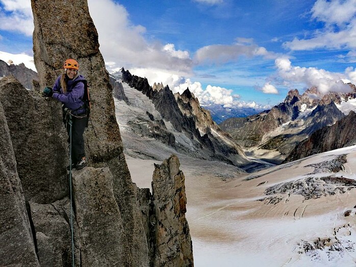 Camille and Leo trad climbing up between la Vierge and the Grand Flambeau